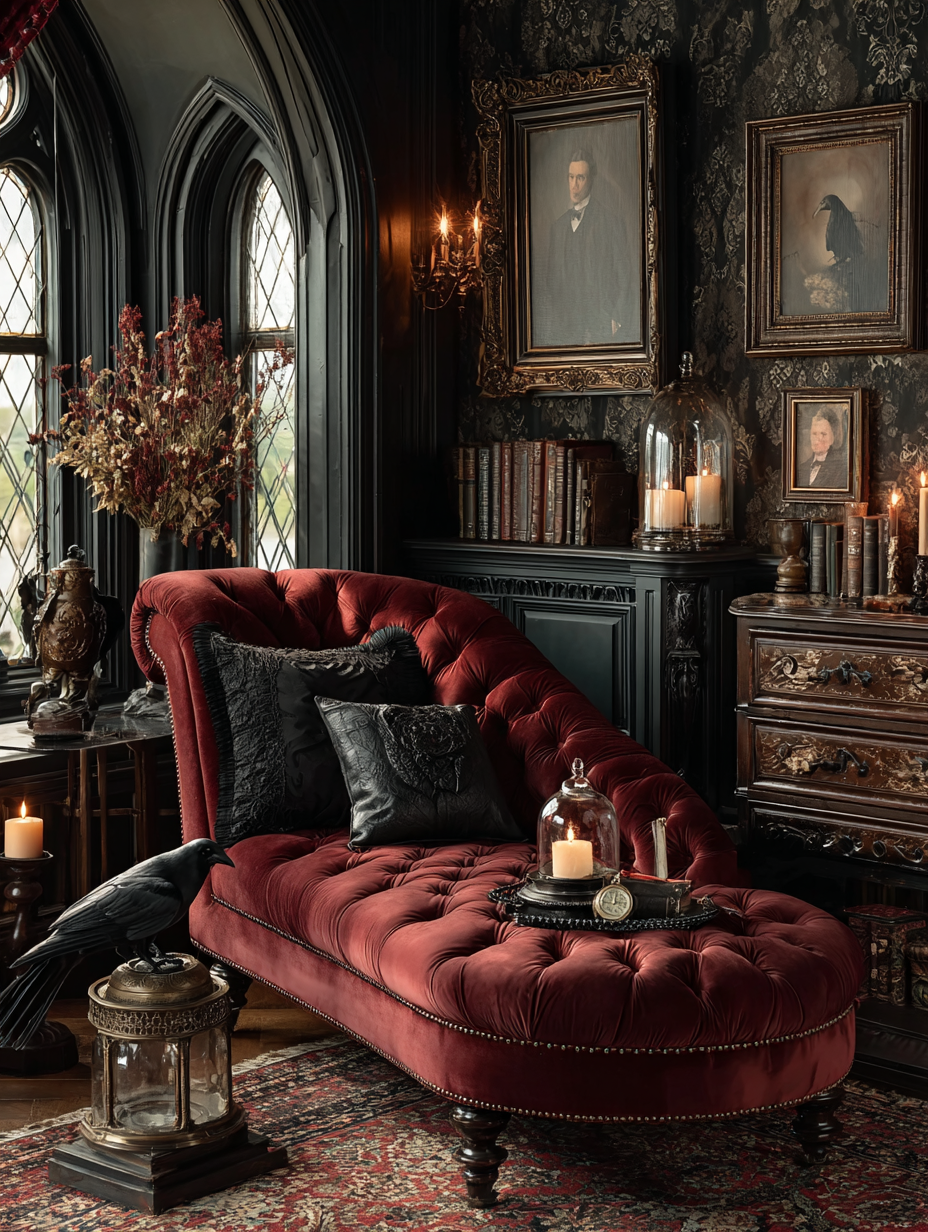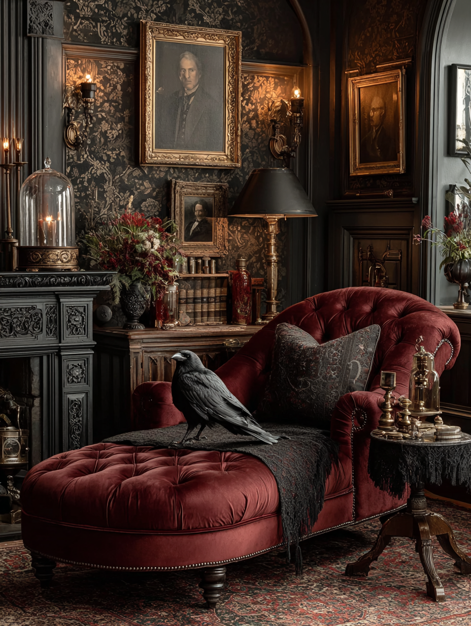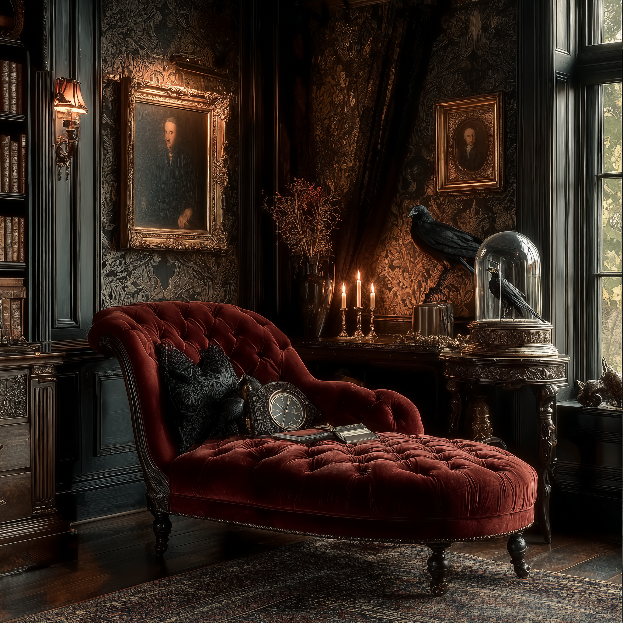 https://mpm-production-2025.s3.us-east-1.amazonaws.com/prompts/cjd70bzcfs9aks6/images/1764380052393-12-3-25-victorian.png An ornate parlor with burgundy velvet chaise lounge, brass pocket watch on lace doily, taxidermied ravens under glass dome, damask wallpaper, gaslight sconces casting amber glow, antique daguerreotype portraits in gilded frames, --q 2, --style standard, --fast, victorian, afternoon, elegant, mysterious, sophisticated, interior-view, medium-shot, window-light, dark-and-moody, elegant, vintage, low-light, table-lamps, warm-glow, dramatic-shadows, subtle-glow, subtle-highlights, darkened-with-golden-highlights, muted-colors, warm-tones, dark, vintage, warm-antique, delicate-lace, metallic, patina, velvet, darkred, gold, saddlebrown --ar 1:1 --v 7 --q 2 --s 750 --c 10 --w 0 keypromptninja