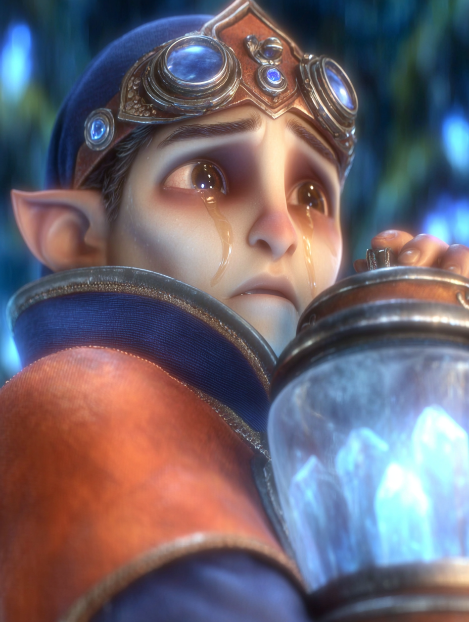 A whimsical fantasy elven miner character with ornate brass steampunk goggles and a distinctive pointed hat adorned with mystical gems, holding a glowing enchanted lantern, surrounded by bioluminescent crystal caverns with dramatic blue and green magical light rays piercing through the underground realm in a high fantasy, adventurous, curious, mysterious style, viewed from a close-up shot, shot on canon eos r5 with canon rf 35mm f/1.8 macro is stm lens, diffused sunlight lighting, with a adventure/action, fantasy, mystical vibe, accented by atmospheric light, lantern light, back light, glowing highlights, god rays, lens flare, featuring cool tones, saturated colors, vibrant colors, tetradic colors, blue, gold, green, orange, colorful colors, with crystalline, metallic, reflective, bioluminescence, glowing, photoluminescence, radiant effects --v 7 --ar 3:4 --c 25 --s 850 --sref https://dhzkdndgolte1.cloudfront.net/eyJidWNrZXQiOiJtcG0tcHJvZHVjdGlvbi0yMDI1Iiwia2V5IjoicHJvbXB0cy84NHlscThtamdnNWgybnQvaW1hZ2VzLzE3NTkxNjIyOTE3NTctOS0yOS0yNS1lbGYucG5nIiwiZWRpdHMiOnsicmVzaXplIjp7IndpZHRoIjo4MDAsImhlaWdodCI6NjAwLCJmaXQiOiJpbnNpZGUifSwicXVhbGl0eSI6ODV9fQ== --sw 600 keyshortcuts