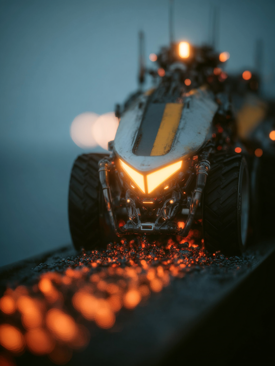 A futuristic farmer operating a highly sophisticated lava harvesting machine with intricate electronics and glowing lighting systems on an alien planet, advanced agricultural technology, complex mechanical details, illuminated control panels and sensors in a sci-fi, adventurous, determined style, viewed from a low angle shot, medium shot, alien sunlight lighting, at afternoon, with a advanced technology, cinematic, futuristic vibe, accented by atmospheric light, holographic glow, spacecraft glow, glowing highlights, lens flare, neon glow, volumetric lighting, featuring high-contrast colors, saturated colors, vibrant colors, amber, cyan, electric blue, emerald, space colors, with luminance, metallic, reflective, glossy reflection, specular highlights, bioluminescence, electroluminescence, glowing effects --v 7 --ar 3:4 --c 20 --s 400 --style raw --sref https://dhzkdndgolte1.cloudfront.net/eyJidWNrZXQiOiJtcG0tcHJvZHVjdGlvbi0yMDI1Iiwia2V5IjoicHJvbXB0cy9kNHl4d3k0dWM1c2hremQvaW1hZ2VzLzE3NjIzNzUwMDU3ODEtMTAtNS0yNS1sYXZhLWZhcm1lci5wbmciLCJlZGl0cyI6eyJyZXNpemUiOnsid2lkdGgiOjgwMCwiaGVpZ2h0Ijo2MDAsImZpdCI6Imluc2lkZSJ9LCJxdWFsaXR5Ijo4NX19 --sw 600 --w 0 gogravital