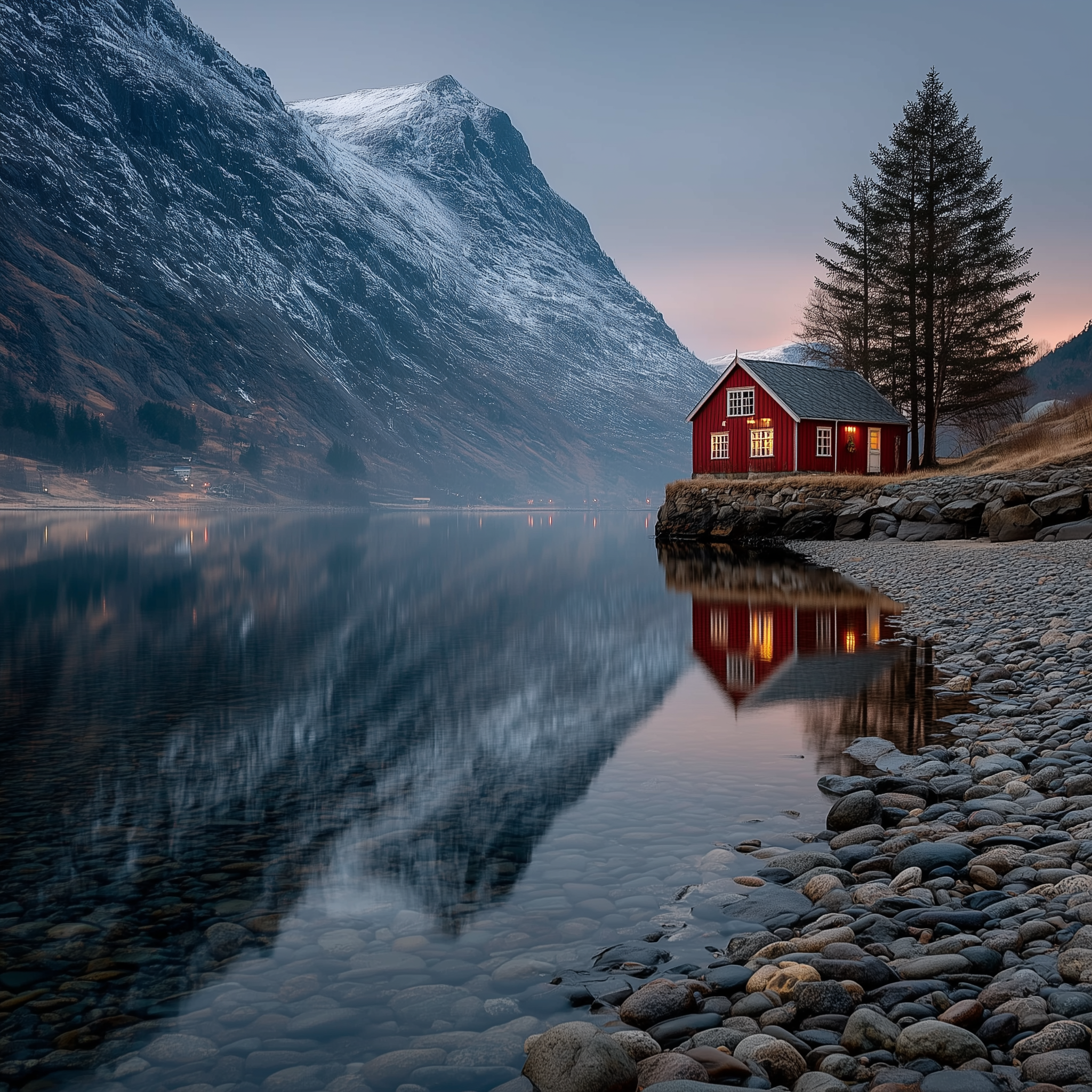 A cozy hygge scene with knitted blankets, wooden cabin interior, flickering candlelight, birch branches in ceramic vase, minimalist Scandinavian furniture, snow falling outside frosted window, warm amber and cool blue contrast in a nordic, content, intimate, serene/tranquil style, viewed from a interior view, wide shot, snowy, window light lighting, at twilight, with a elegant, minimalist, rustic vibe, accented by candlelight, warm glow, warm glow from fire, fire light, flickering lights, subtle glow, featuring cool tones, muted colors, warm tones, amber, beige, sky blue, white, neutral, nordic woods, winter colors, with ceramic, soft, textured effects --v 7 --ar 1:1 --c 10 --w 0 --s 750 --q 2 --sref https://mpm-production-2025.s3.us-east-1.amazonaws.com/prompts/lbl24wcyj1l2t3z/images/1765552013646-mid-1.png --sw 400 keypromptninja