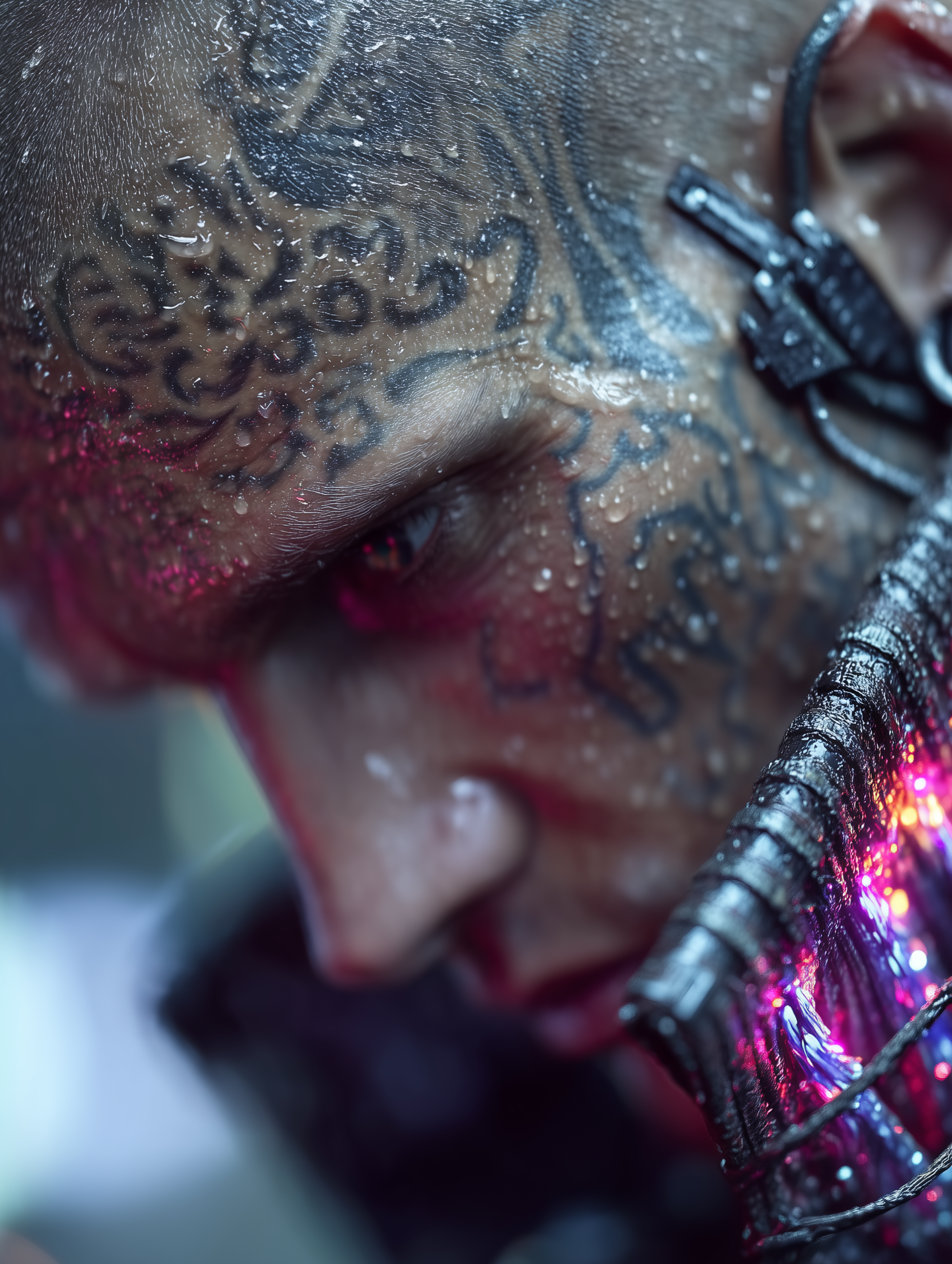 https://dhzkdndgolte1.cloudfront.net/eyJidWNrZXQiOiJtcG0tcHJvZHVjdGlvbi0yMDI1Iiwia2V5IjoicHJvbXB0cy93Mzhsa290bjd3dzZxanovaW1wb3J0cy8xNzcwMjI0ODkwMjY2LTN5cnIyay5wbmciLCJlZGl0cyI6eyJxdWFsaXR5Ijo5NX19 A rogue netrunner with holographic tattoos cascading down their neck in electric blue and magenta, chrome neural implants gleaming at their temples, wearing a tattered leather jacket over illuminated fiber-optic weave, standing in rain-slicked neon alley as digital glitches ripple across their augmented reality contact lenses, wisps of steam rising from nearby vents in a cyberpunk, mysterious, intense, confident style, viewed from a medium-close-up-shot, low-angle-shot, shot on sony-a7r-iv, rainy-night lighting, at night, with a cyberpunk, urban, gritty vibe, accented by neon-glow, city-lights, god-rays, lens-flare, volumetric-fog, featuring high-contrast-colors, vibrant-colors, tetrachromatic, cyan, magenta, purple, black, neon, bold, with metallic, wet, chrome, glossy-reflection, wet-surface, bioluminescence, electroluminescence, glowing-neon --v 7 --ar 3:4 --c 0 --w 0 --q 1 --s 1000 keypromptninja